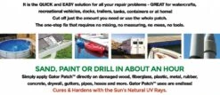 The answer is simple. The Gator Patch offers a watertight and impenetrable patch for almost every surface you’ll ever encounter . Perfect for aluminum or fiberglass boats, kayaks, canoes, pipes, leaks, skid plates, tanks, and more!