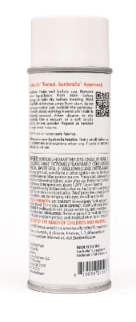 Directions:Â Before using, shake container well, remove excess liquid/debris from stain, and let stain dry before starting treatment. To clean, hold can upright, 6-8 inches away from stain. Spray in a circular motion just outside the perimeter of the stain, slowly working inward until stain is completely covered. Allow cleaner to dry completely. Use a vacuum or a soft bristle brush to remove powder. Repeat as needed for tough or set-in stains. On non-Sunbrella fabrics, test a small, hidden area for colorfastness and examine when dry. If color or texture if affected, do not use.