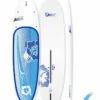 The carbon fibre mounting plate under the foot pad is ultra-rigid and helps guarantee performance similar to rigid boards. The board’s Drop Stitch vertical seam construction with glued under-and-over deck, hull and rail reinforcements gives it excellent strength and rigidity. It’s light weight with no compromise on durability.